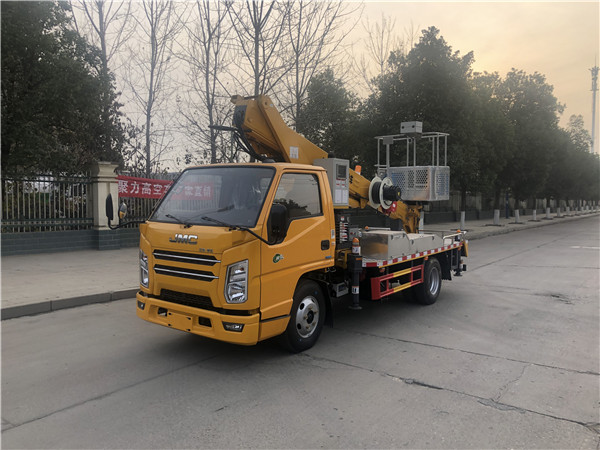 國六江鈴19.5米高空作業車 采用江鈴3815mm軸距底盤,型號:JX1083TK26帶空調、方向助力,由江鈴公司提供江鈴152馬力發動機,輪胎型號為7.50-16鋼絲胎。 江鈴19.5米高空作業車主要特點: 1、臂架采用高強度鋼板HQ60/5.0,折彎焊接成型...
